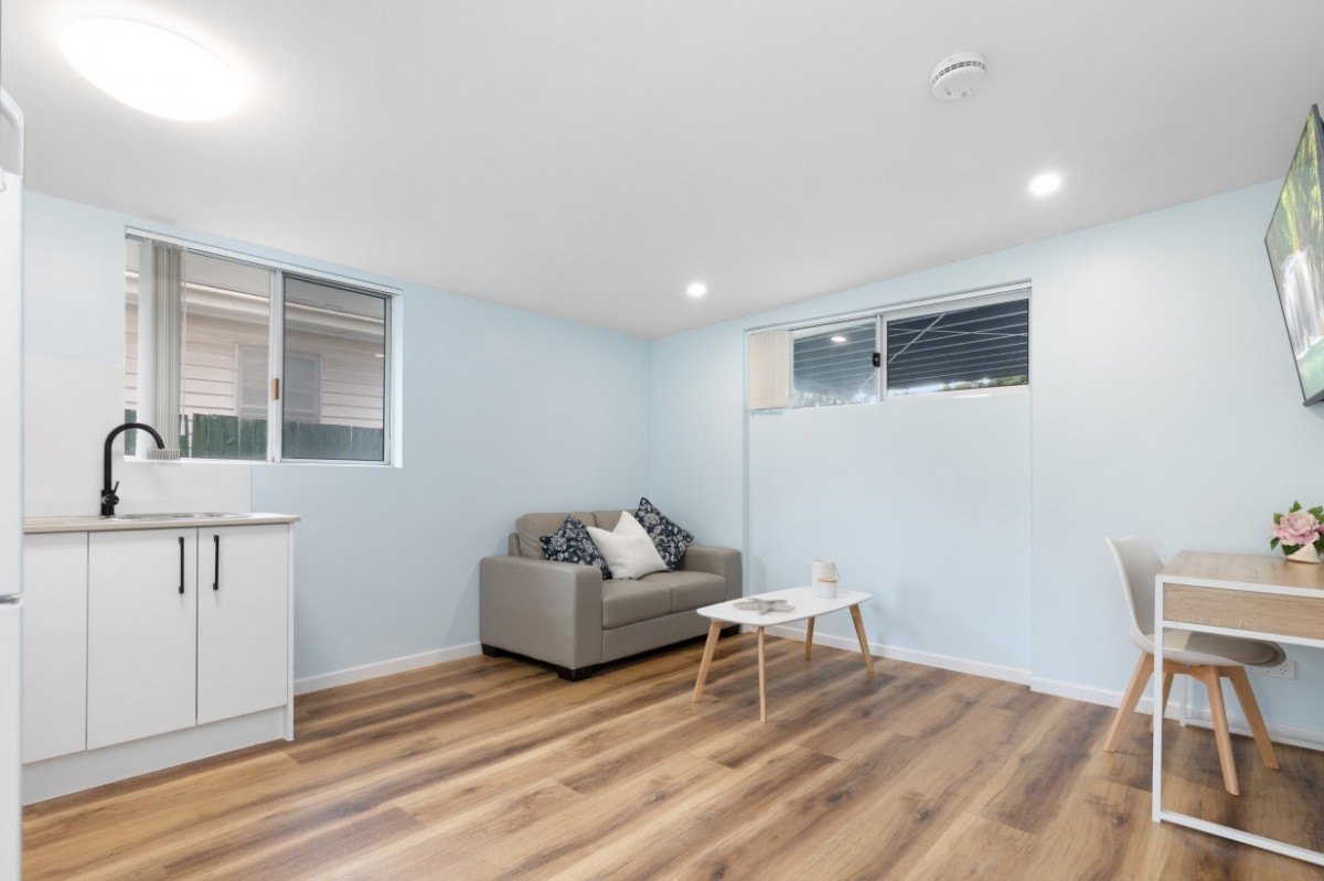 Cleverly designed and refurbished studio unit in a superb tranquil setting facing Peggs Park near the border of Tarragindi and Moorooka