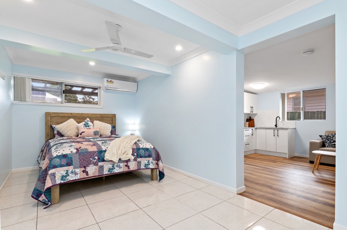 Located downstairs facing the rear of the property and opens out onto a patio and the fenced rear yard with separate entry. Fully furnished and air conditioned plus ceiling fan, kitchenette, bathroom and spacious robes.