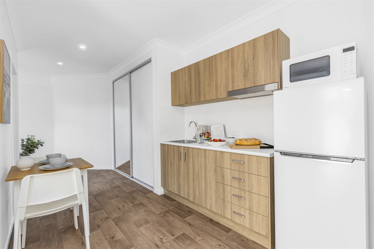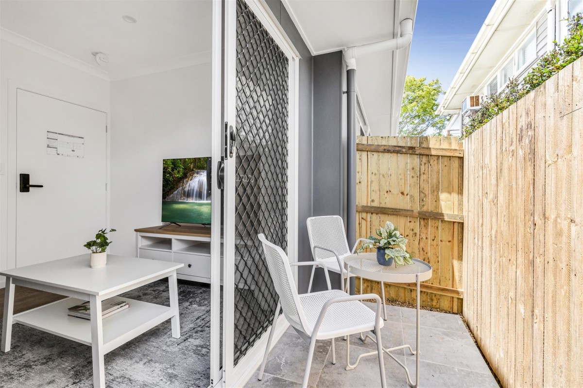 Located in the centre of the property with extra large bathroom. Generous open plan living space, kitchenette, bathroom with separated bedroom area opening out to your own fully fenced courtyard. Complete with air conditioning, security screens, ceiling fan and loads of storage