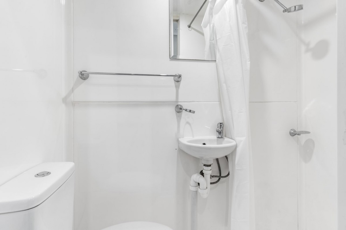 Located facing the rear of the property, air conditioned, open plan living and kitchen space, compact bathroom with shower and toilet, communal laundry with 2 washing machines.