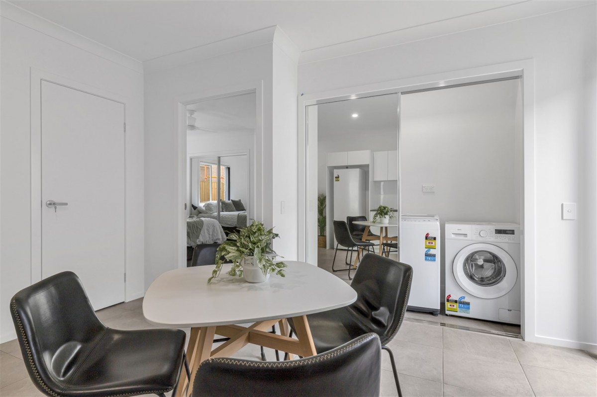 Located upstairs with a private balcony facing the front of the property with a peaceful suburban setting. Fully air conditioned, with a ceiling fan, screens, kitchenette, bathroom, separated bedroom with spacious built in robes.