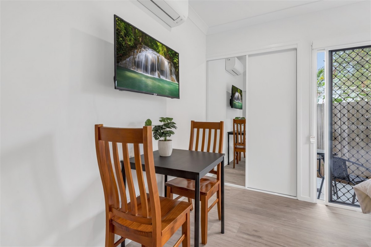 Fully furnished with an open plan living area, some with separate bedroom area, kitchenette, ensuite and built in robes. Air conditioned for your comfort, complete with security screens and ceiling fan. Private outdoor fenced courtyard space with extra large bathroom