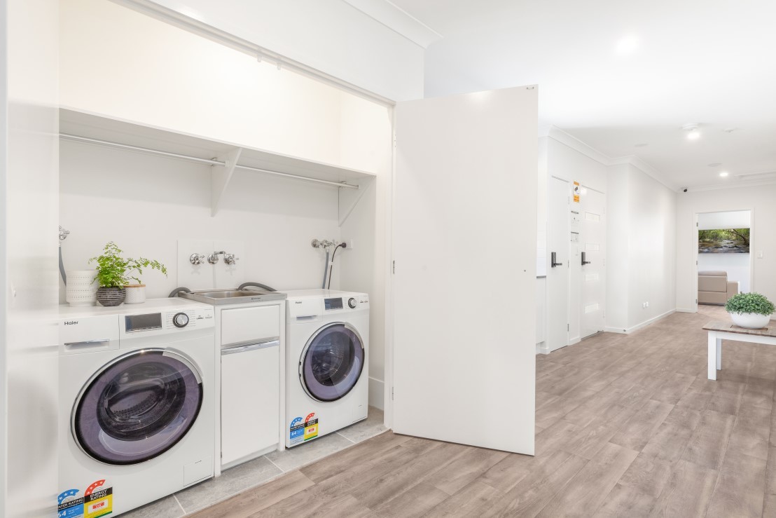There is no going through the hassle of connecting utilities as electricity, water and NBN internet are all included in the rent. Shared laundry with 2 washing machines