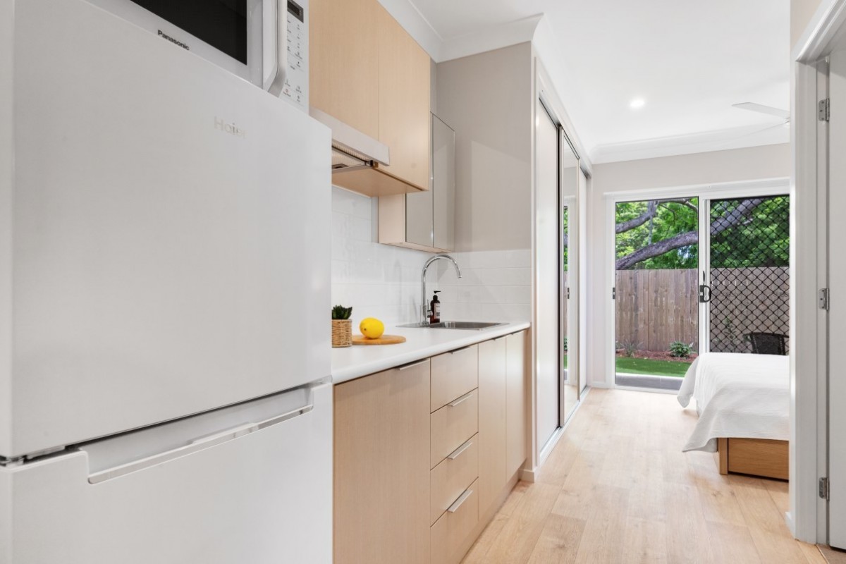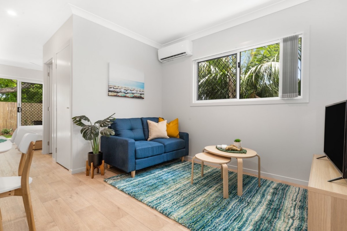 Tastefully furnished and perfectly designed opening out to a fenced private courtyard. Located at the front of the property, open plan in design, air conditioned for your comfort, with ceiling fan and security screens for added security with a kitchenette, bathroom, large bult in robes and living space