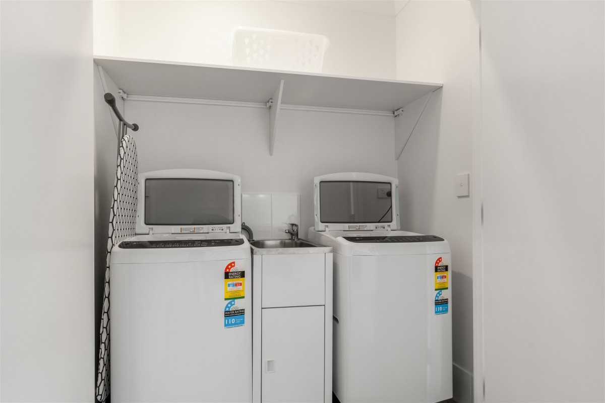 Shared laundry facilities with 2 washing machines, designated parking spaces available for $15 per week